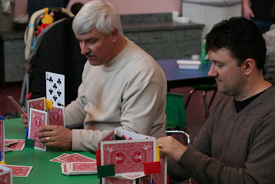 Dan and Billy competing in who could build the largest house of cards!