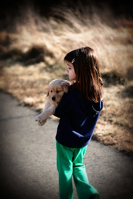 When we got to the playground, we never felt more popular. Who, young or old, could resist a little golden retriever puppy. We were mobbed by tons of kids who just loved all over Rosie. She was a real trooper and I chalked it up as a great socialization activity for her. Of course, on our way home…I couldn’t resist a few photo shoots.