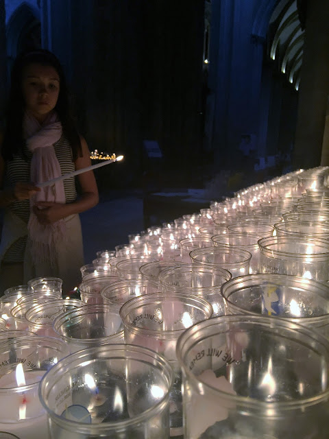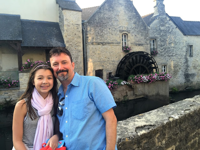 We woke up bright and early to get our rental car and head out of Paris toward Normandy. Dan did an excellent job navigating our way out of Paris! We drove about two hours towards the town of Bayeux where we stayed at Chateau-de-Sully. As a quick detour on our way to Bayeux, we checked out the town of Honfleur and had lunch. After we checked into our chateau we explored the town of Bayeux. Later that evening, we went to an outdoor performance of the Tree of Liberty – very cool light show at the base of the town catherdral.